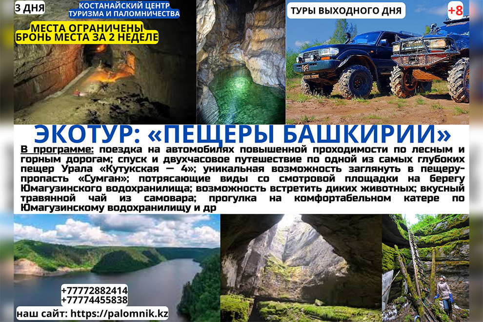 Костанайский Центр Туризма и Паломничества, приглашает Вас, в один из самых красивых, таинственных экотуров — ЭКОТУР «ПЕЩЕРЫ БАШКИРИИ»